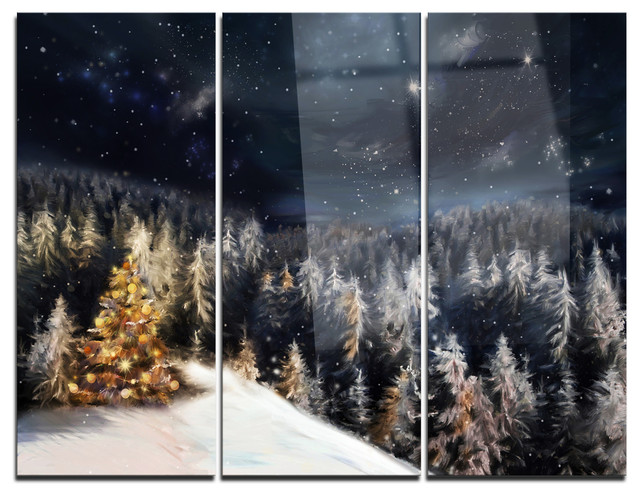 Night Forest Christmas Tree Digital Metal Wall Art 3 Panels 36