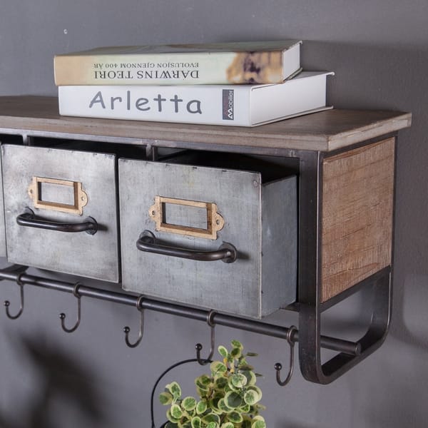 Shop Metal And Wood Wall Cubby Organizer Overstock 23463124