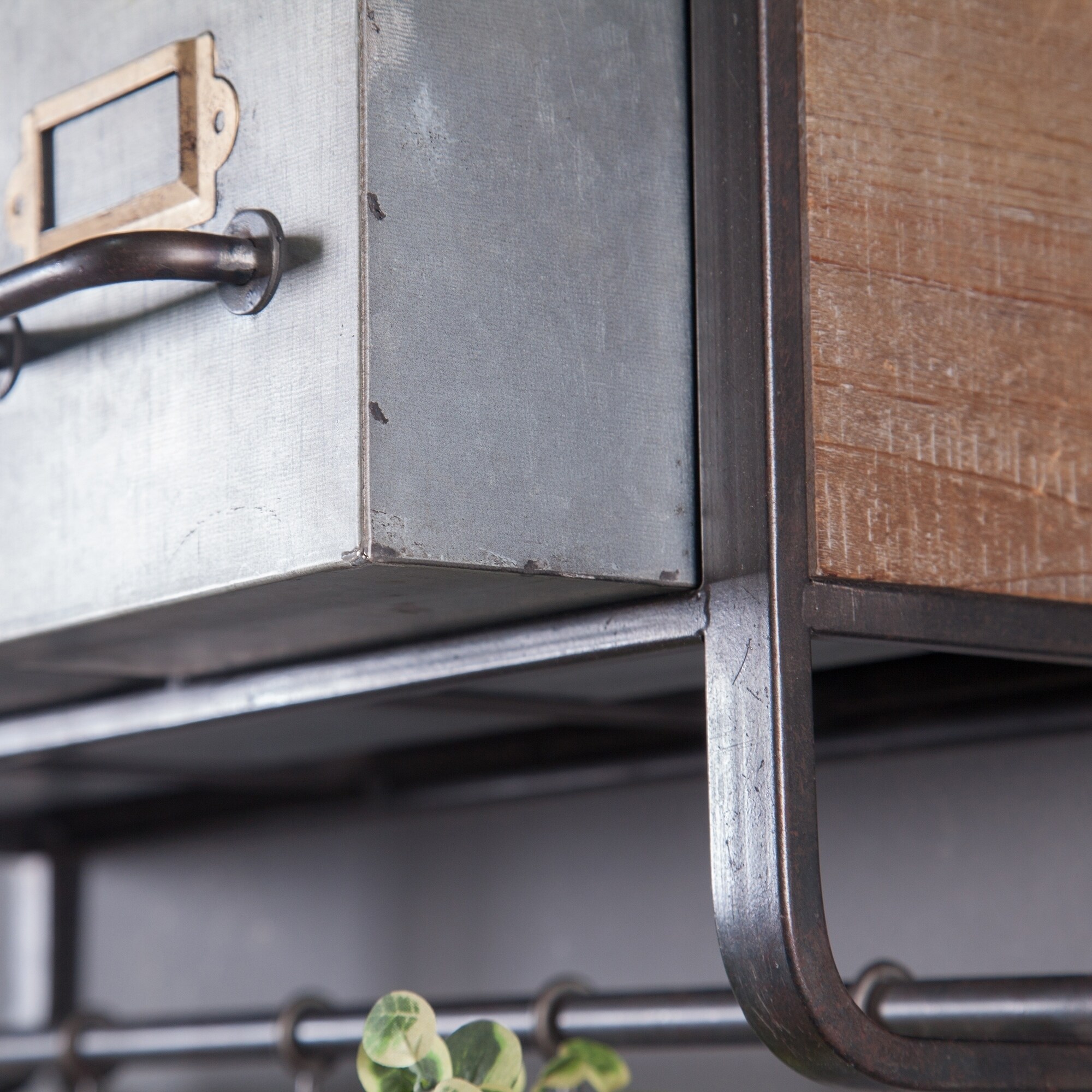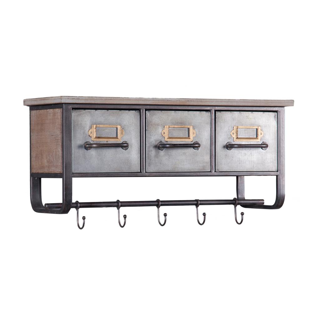 Metal Wall Cubby With Hanging Bar And Recycled Wood Shelves Les