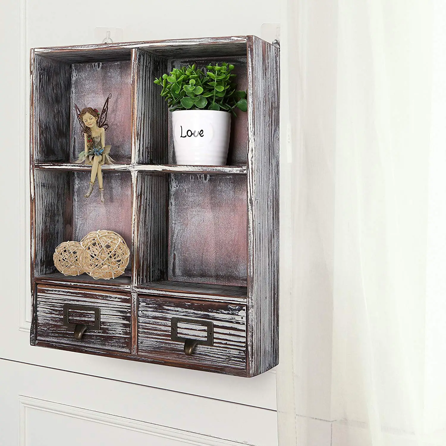 Rustic Torched Wood Wall Mounted Shadow Box Cubby Shelving Buy