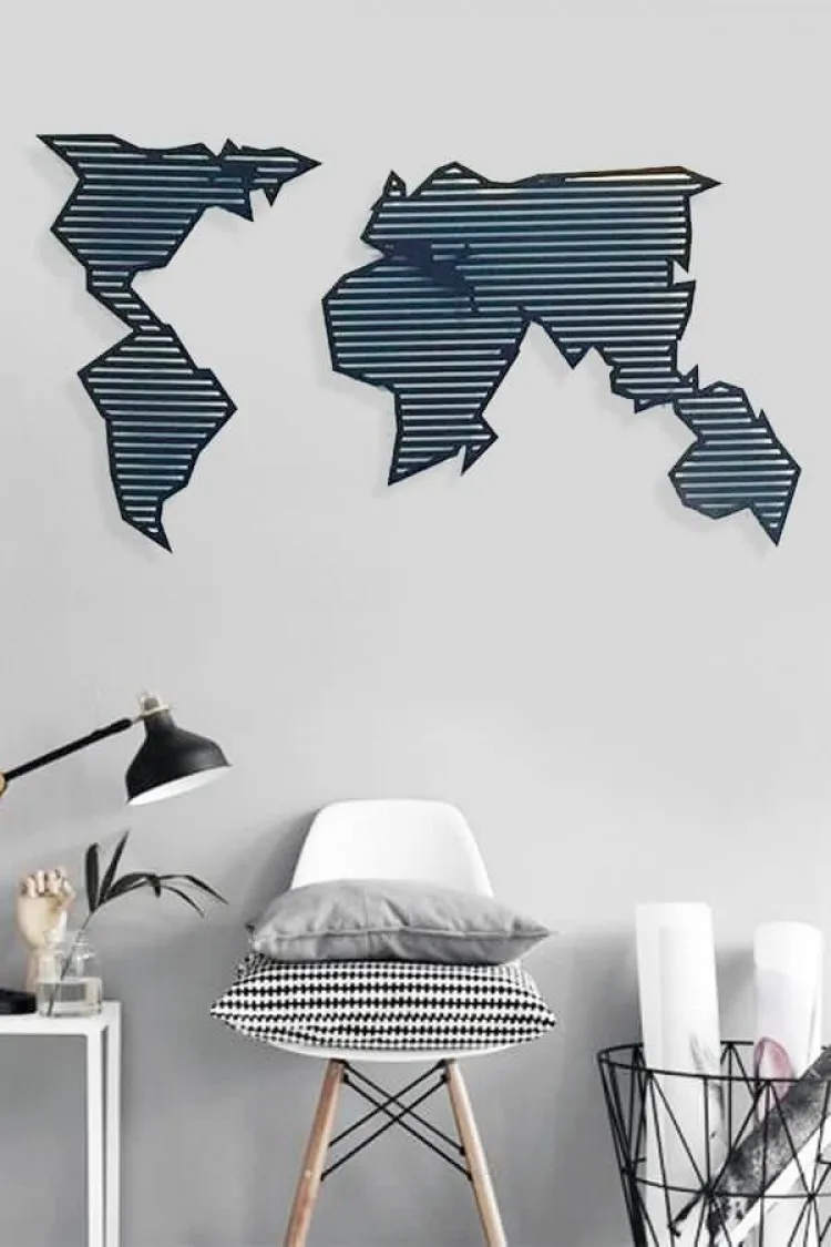 Geometric World Map Black World Map Wall Art Contemporary Metal