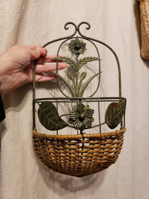 Wall Green Leaves Metal Basket Plant Holder Vintage Wall Etsy