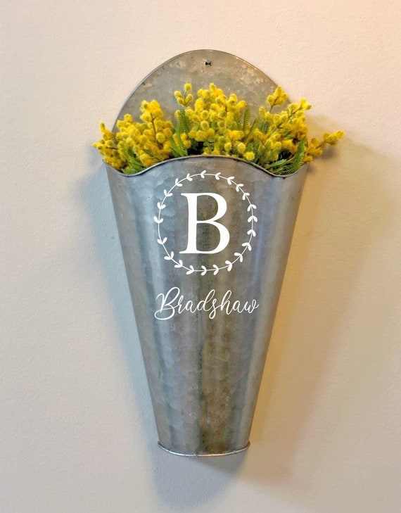 Custom Galvanized Metal Wall Pocket Wall Flower Holder Metal Etsy