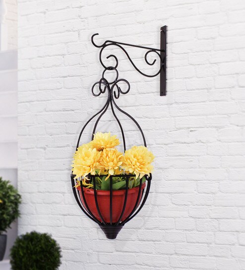 Buy Black Mild Steel Wall Hanging Flower Holder By Home Sparkle