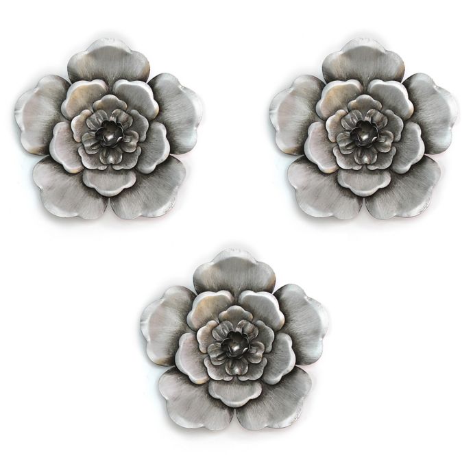 Metal Wall Flowers In Silver Set Of 3 Bed Bath Beyond