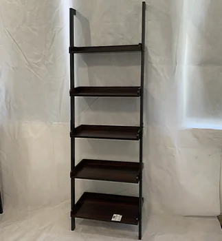 Wall Ladder Bookcase 5 Layer Display Bookcase Metal Frame Wooden