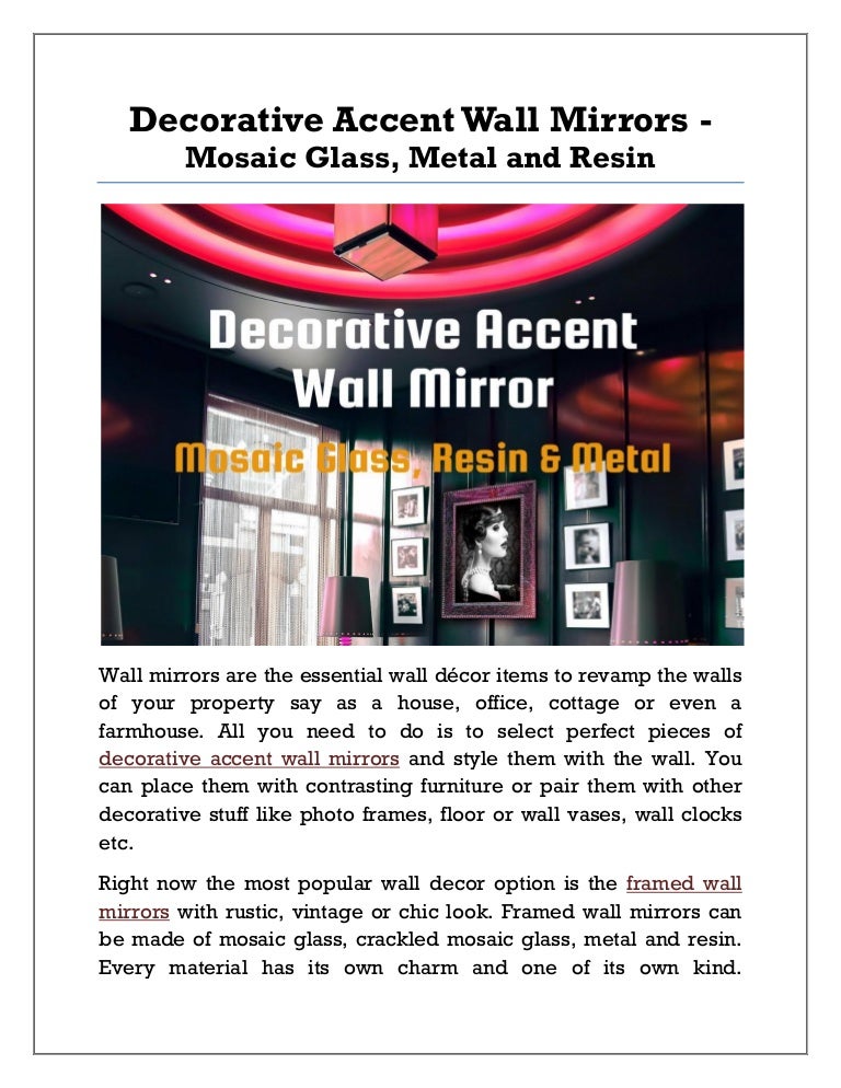 Decorative Accent Wall Mirrors Mosaic Glass Metal And Resin