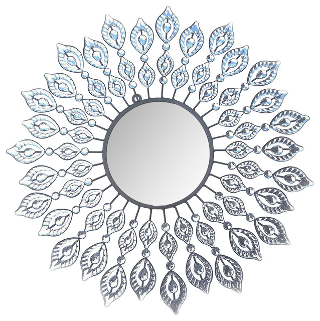 Decorative Crystal Leaf Metal Wall Mirror 24 Contemporary