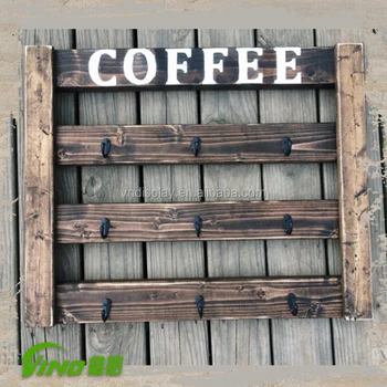 Coffee Cups Holder Wooden Mug Rack Wall Mounted Coffee Mug Rack