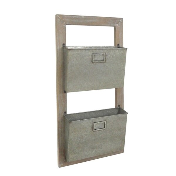 Shop Metal And Wood Storage Two Pockets Wall Organizer Gray