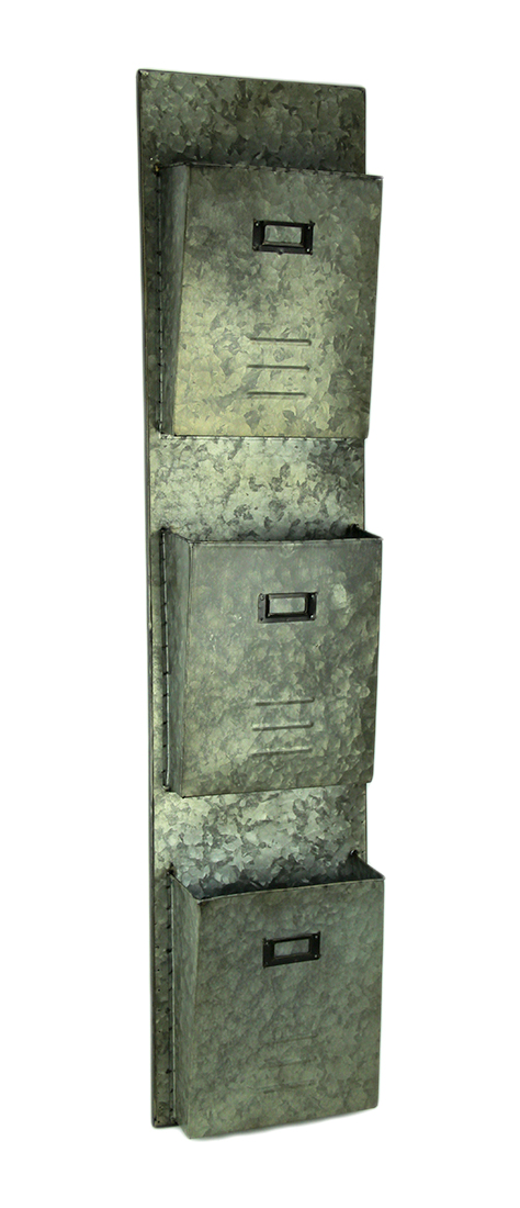 Metal Wall Organizer Galvanized 3 Bin Industrial Vinnymo