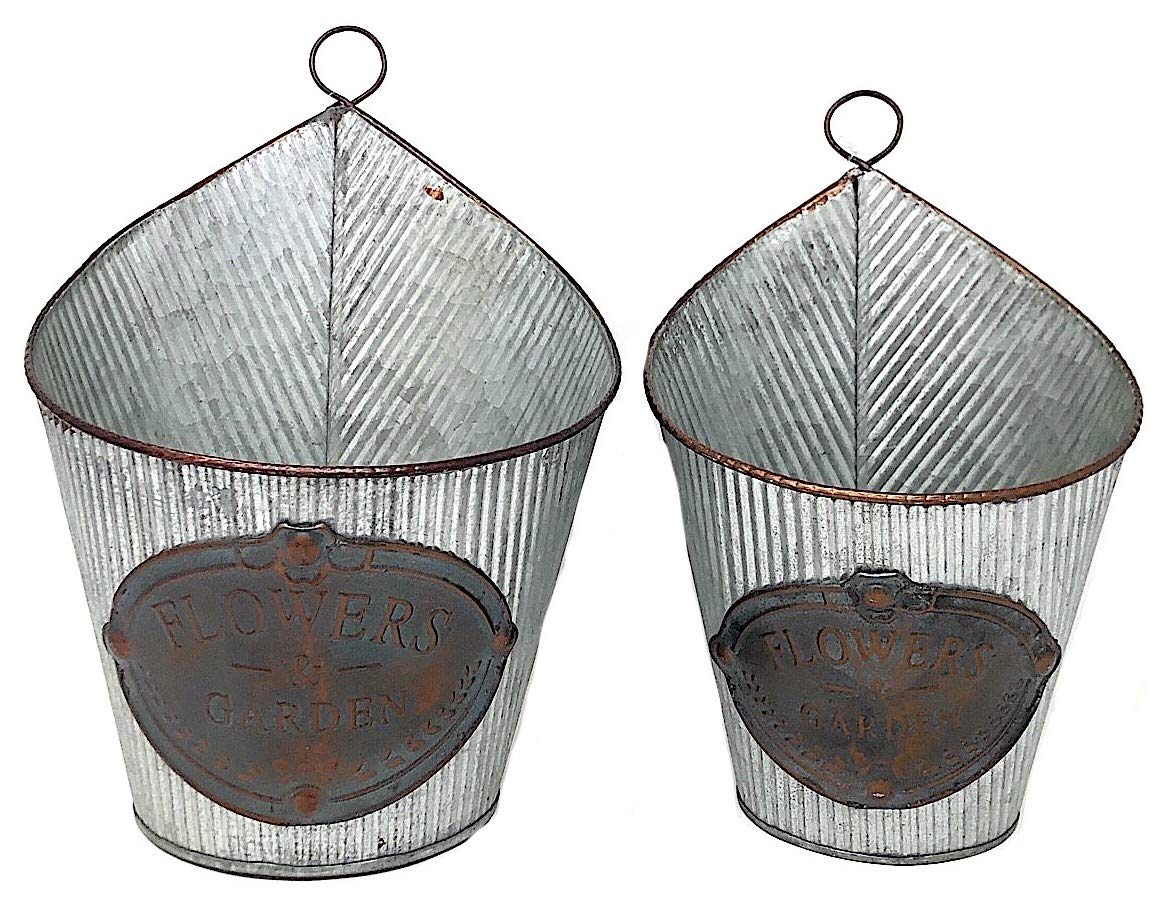 Set Of 2 Rustic Metal Galvanized Wall Pockets Bin Mail Organizer