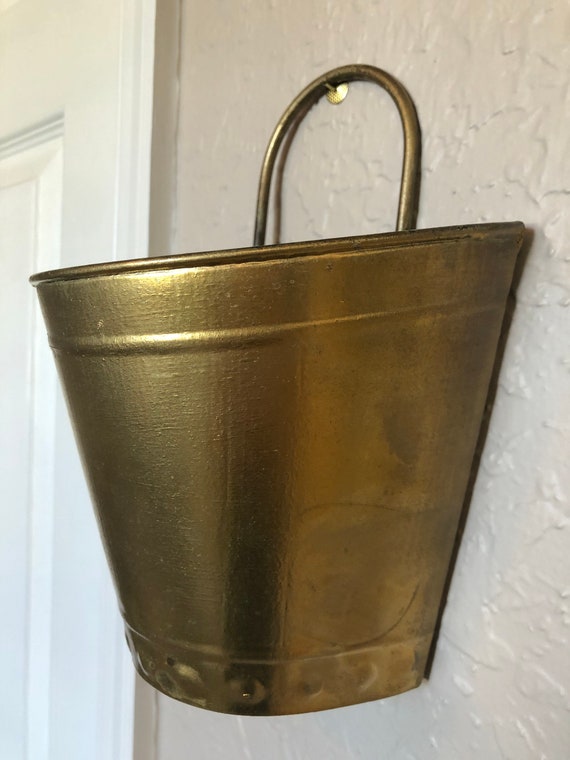 Vintage Wall Pocket Vase Gold Painted Metal Flower Planter Etsy