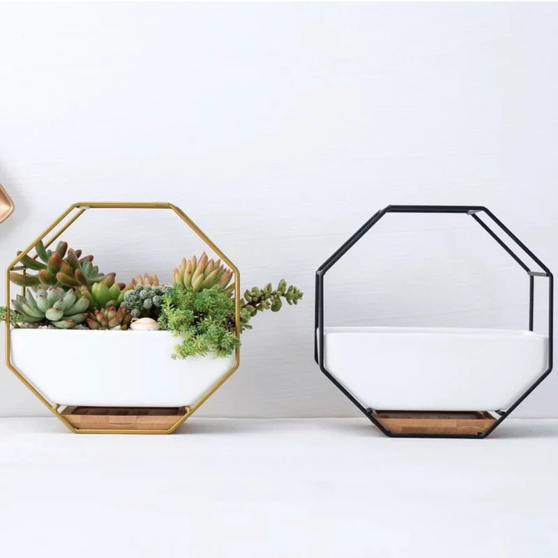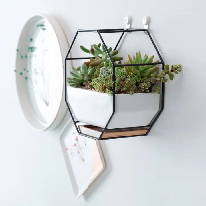 Nordic Ceramic Flowerpots Geometric Succulent Cactus Metal Wall