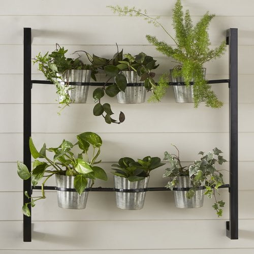 Wrought Studio Metal Terra Cotta Wall Pot Holder Holds 6 Pots