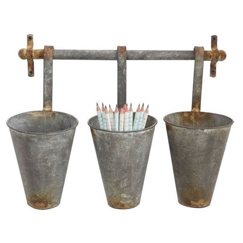 Metal Wall Rack With 3 Tin Pots 3r Studios Target