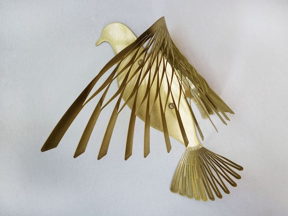 Vintage Brass Bird Wall Sculpture 1970s 100685