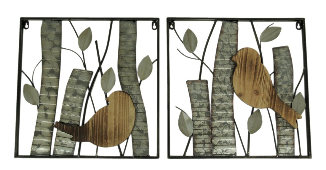 Zeckos Rustic Birds And Branches 2 Piece Wood And Metal Wall