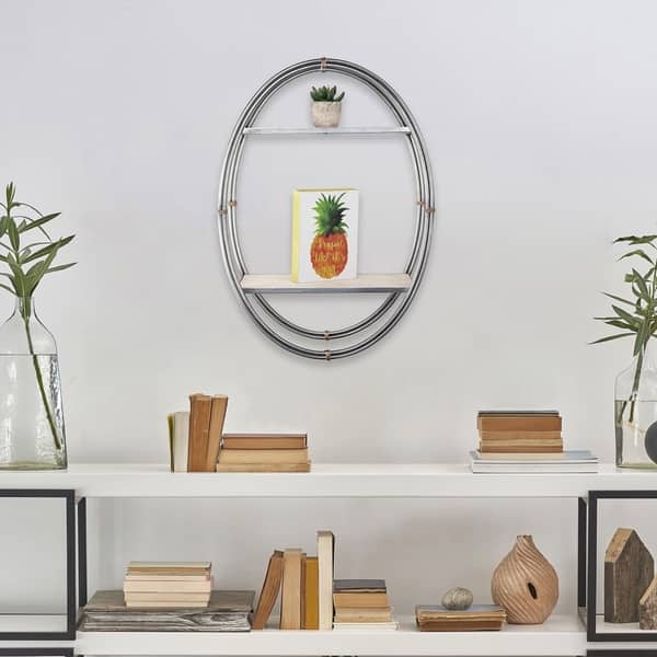 Shop American Art Decor Wood Metal Oval Hanging Wall Shelf