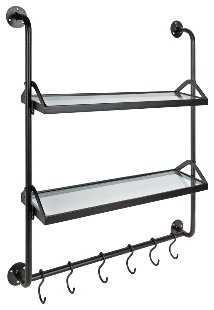 Double Metal Wall Shelf With Hooks Vivaterra