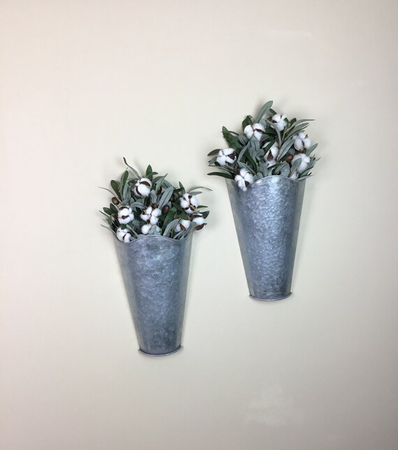 Galvanized Metal Wall Planter With Olive Branch And Cotton Etsy