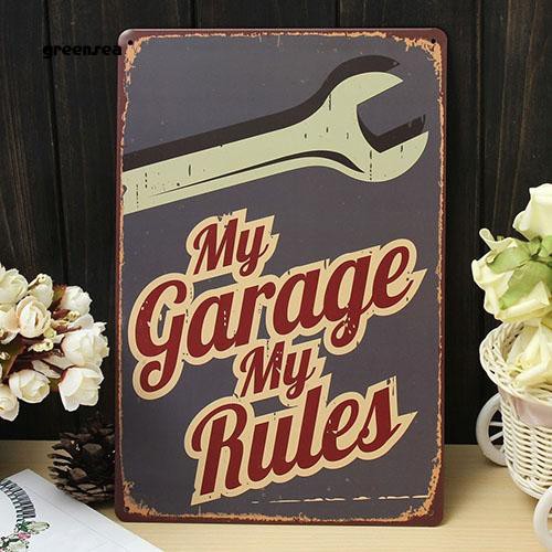 Greensea Sign Garage Rule Metal Wall Art Decor Rustic Plaque Bar