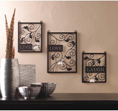 15865 Live Love Laugh Candle Holder Black Metal Wall Plaque Decor