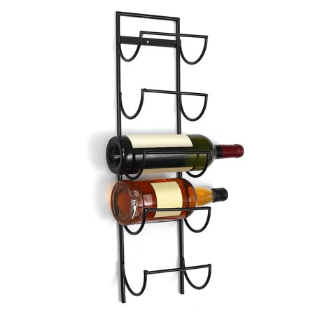 5 Bottle Wine Rack Black Metal Wall Mounted Storage Holder Shelf
