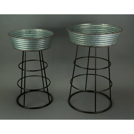 Rustic Galvanized Metal 2 Piece Round Wash Tub Planter Stand Set