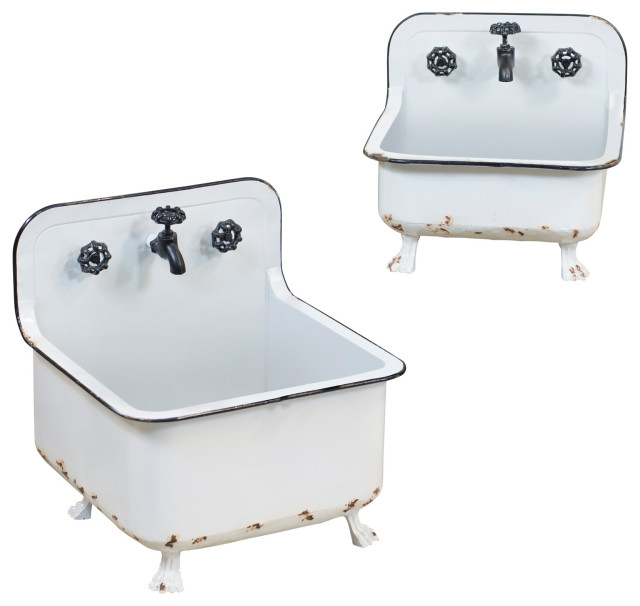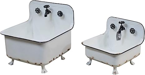 Metal Wash Basin Planters Set Of 2 White Black Farmhouse