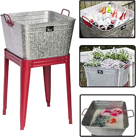Raised Galvanized Metal Wash Tub Planter Drink Holder Wind And