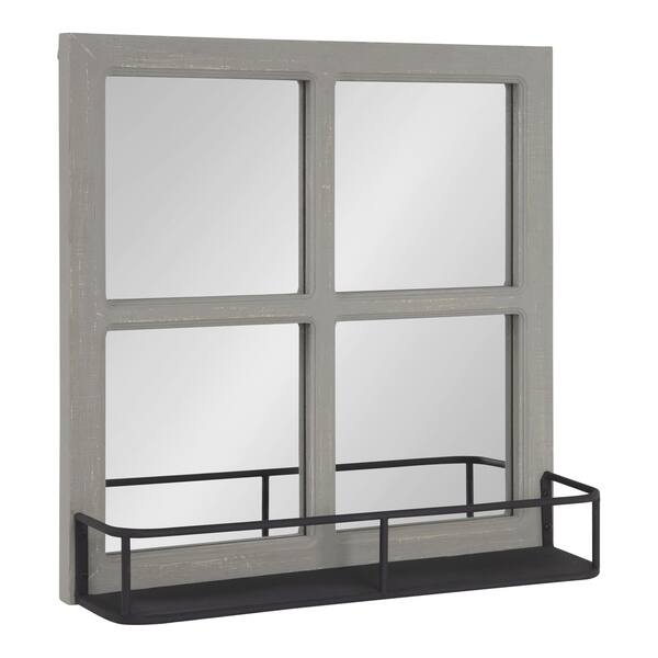 Metal And Wood Windowpane Mirror With Shelf Americanartdecor Com