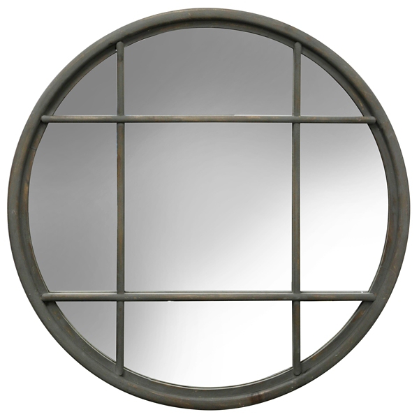 Gray Metal Round Window Pane Mirror Kirklands