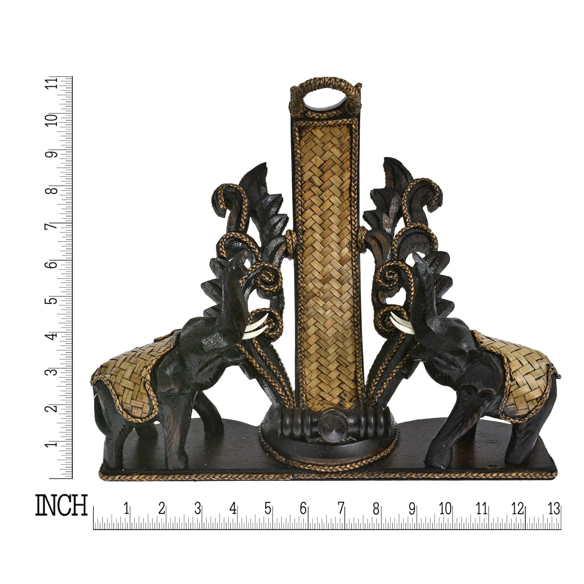 Sale Joyous Elephant Carved Rain Tree Wooden Wine Bottle Holder