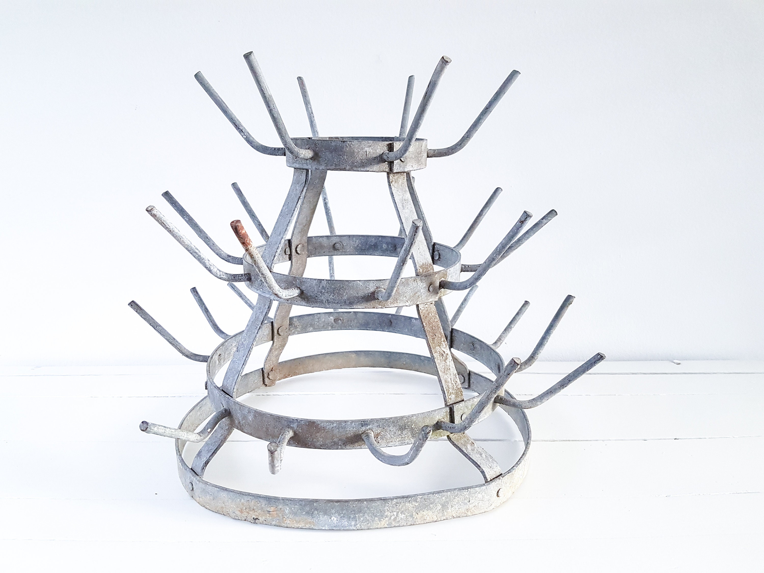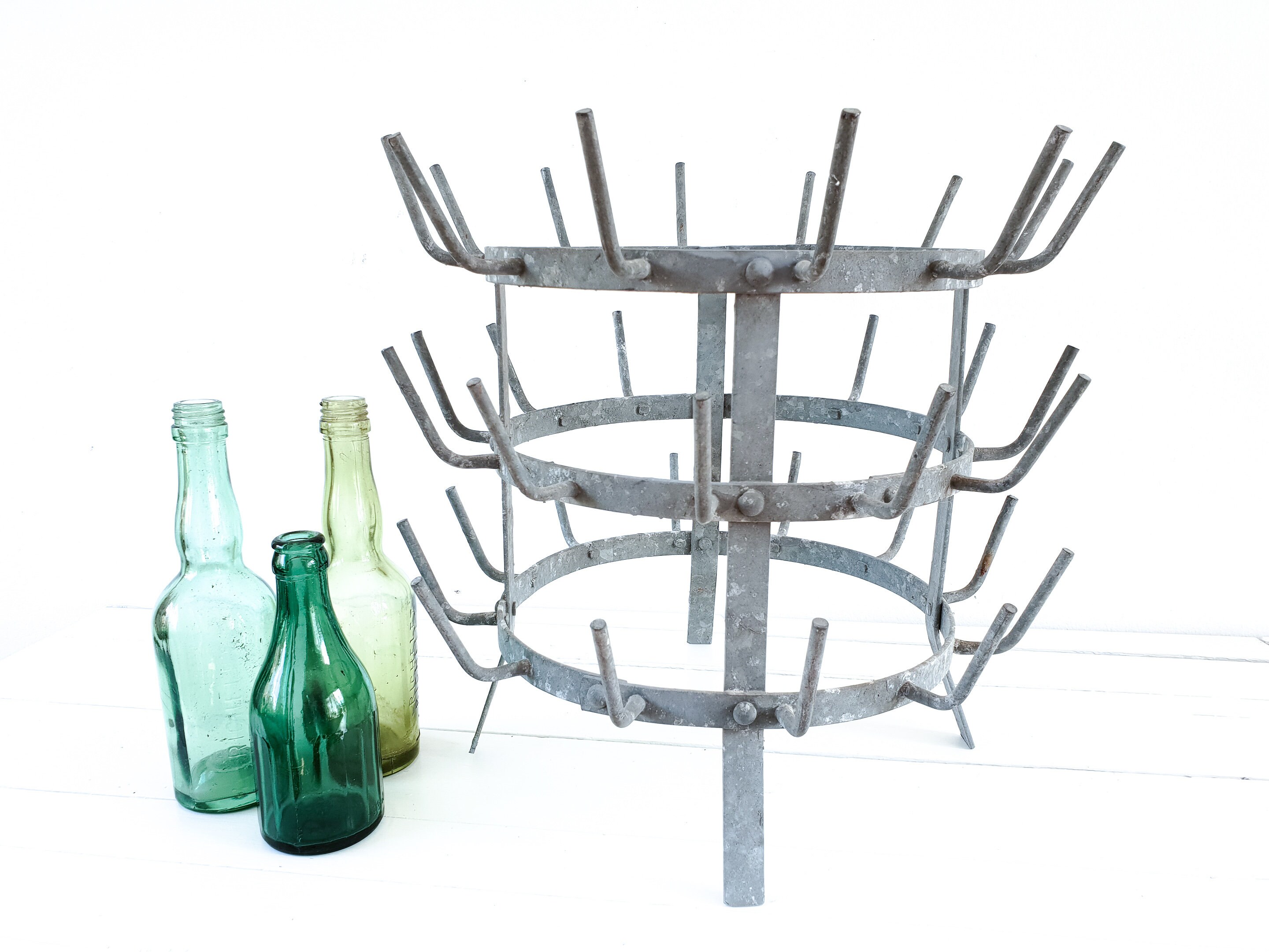 Vintage French Metal Wine Bottle Rack Old Bottle Drying Rack