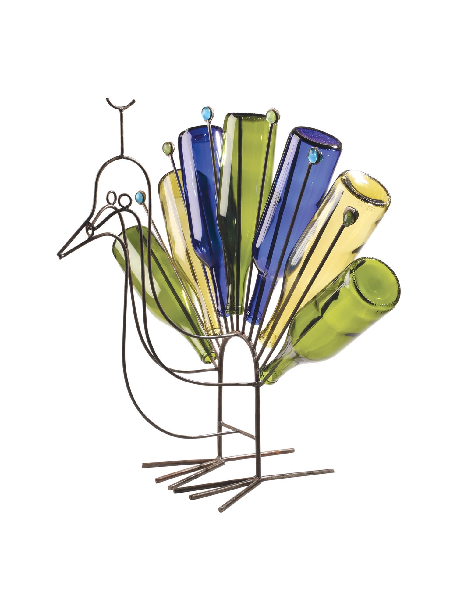 Art Artifact Peacock Bottle Holder Decorative Metal Wire Bird