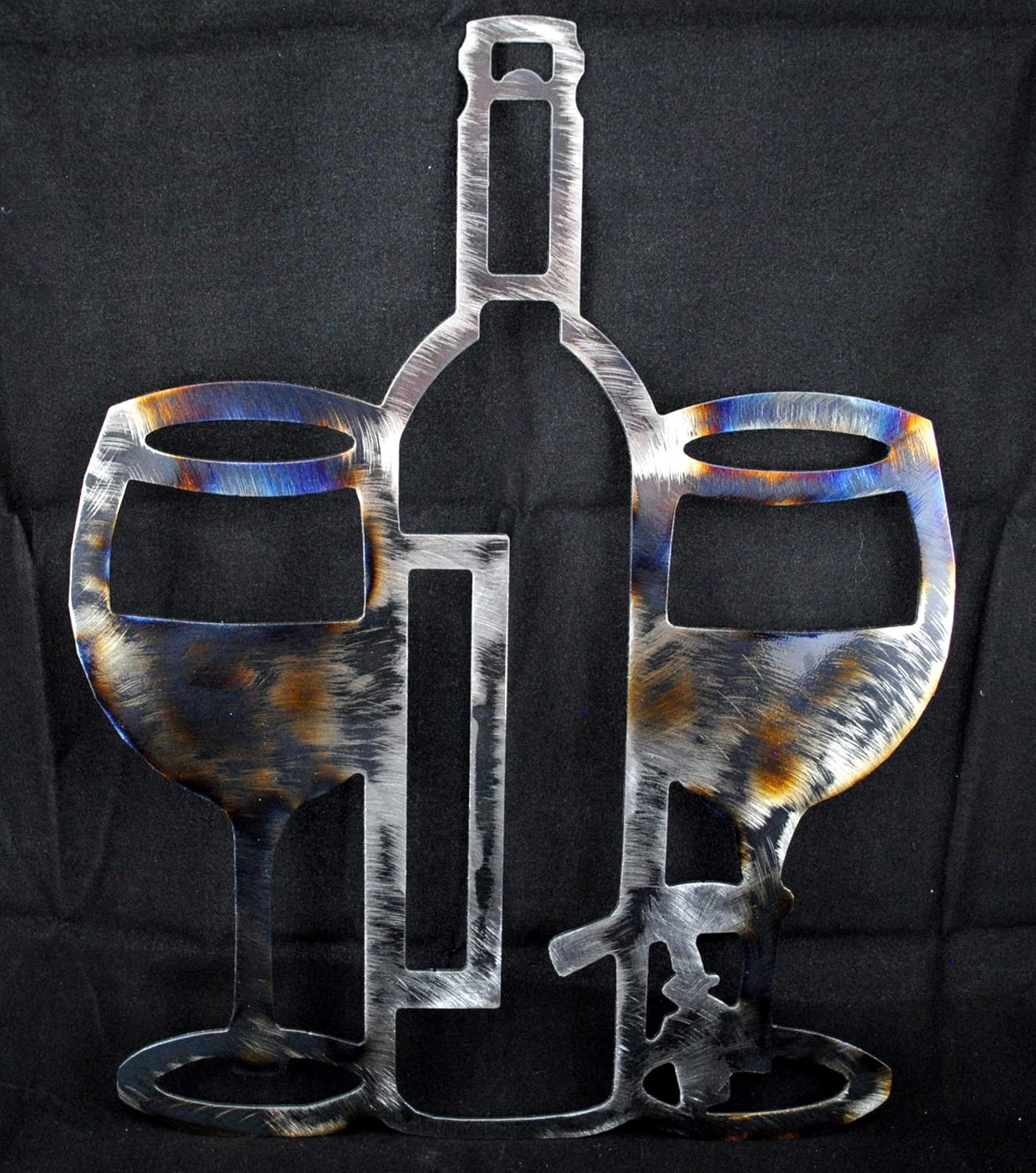 Amazon Com Wine Bottle 2 Wine Glasses Metal Wine Bottle Art