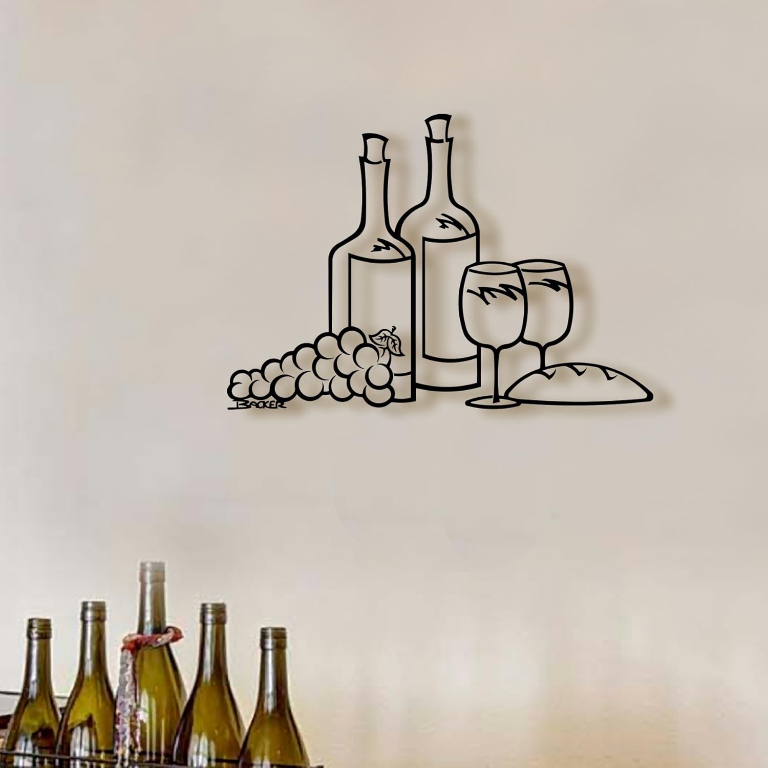Wine Bottles And Glasses Metal Wall Art For Indoor Outdoor Use