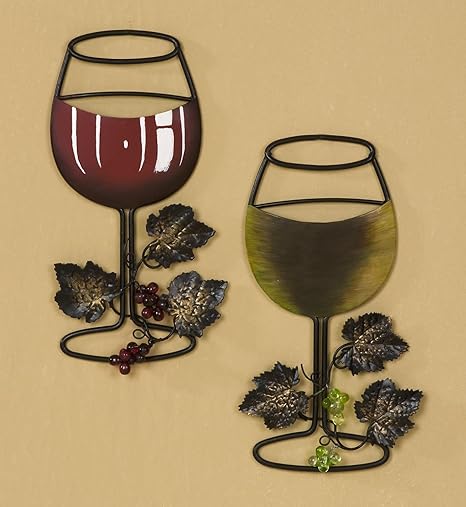 Tripar Wall Metal Wine Art Red Wine White Wine Glass Set Of 2