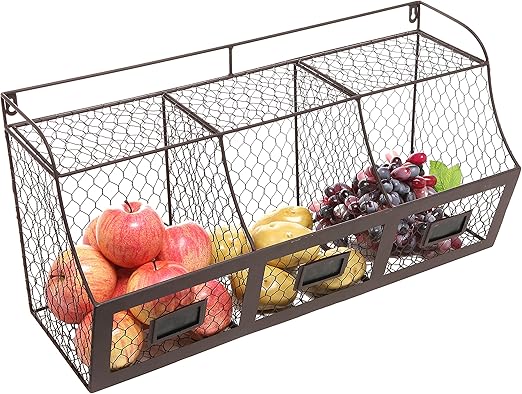 Large Rustic Brown Metal Wire Wall Mounted Hanging Fruit Basket Storage Organizer Bin W Chalkboards Amazon Co Uk Garden Outdoors