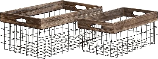 Metal Wood Basket 2 Piece Set Farmhouse Baskets By