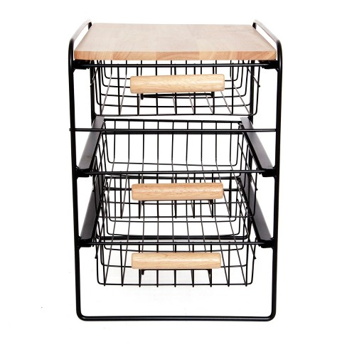 Origami Wood Top Steel Kitchen Organizer 3 Tier Basket Sliding