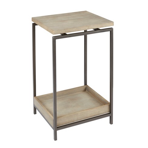 Metal And Wood Side Table Features Grey Wood It Has Modern Charm