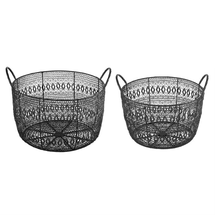 Madison Park Floret Woven Metal Baskets In Black Set Of 2 Bed