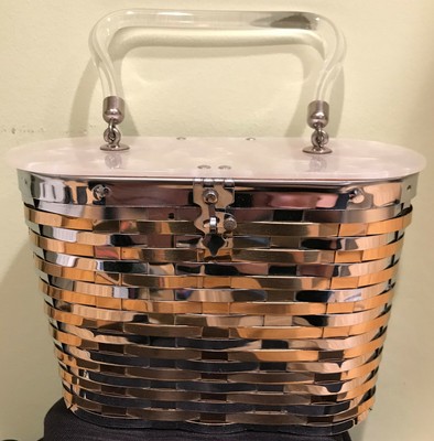 Dorset Rex 5th Ave Silver Metal Woven Basket Purse Vintage Lucite