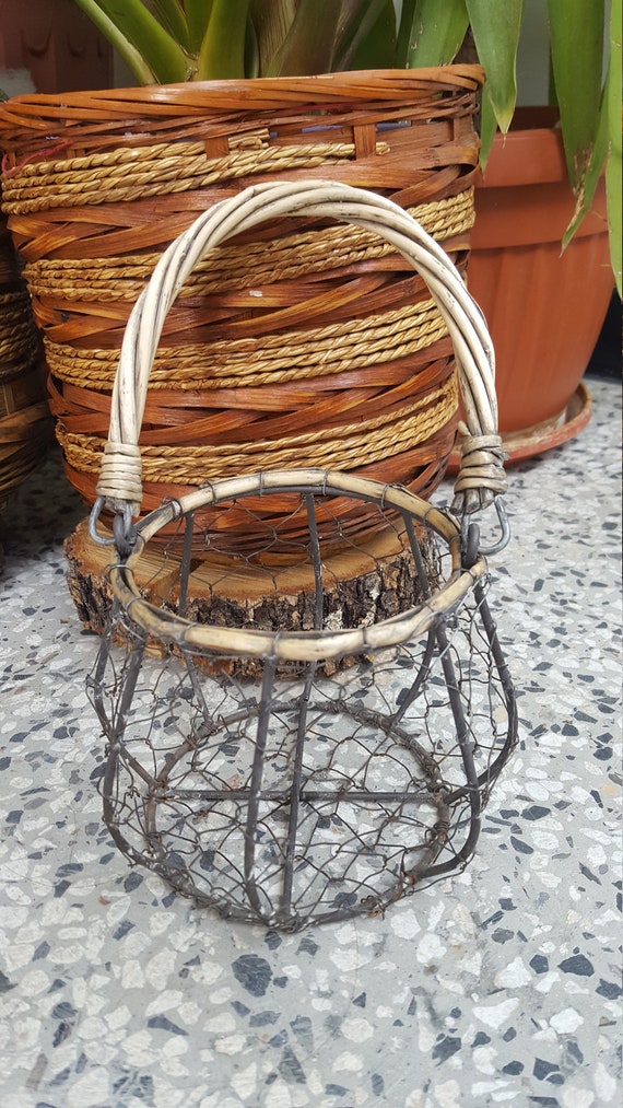 Metal Woven Basket Basket Hand Basket Home Dekor Antique Etsy