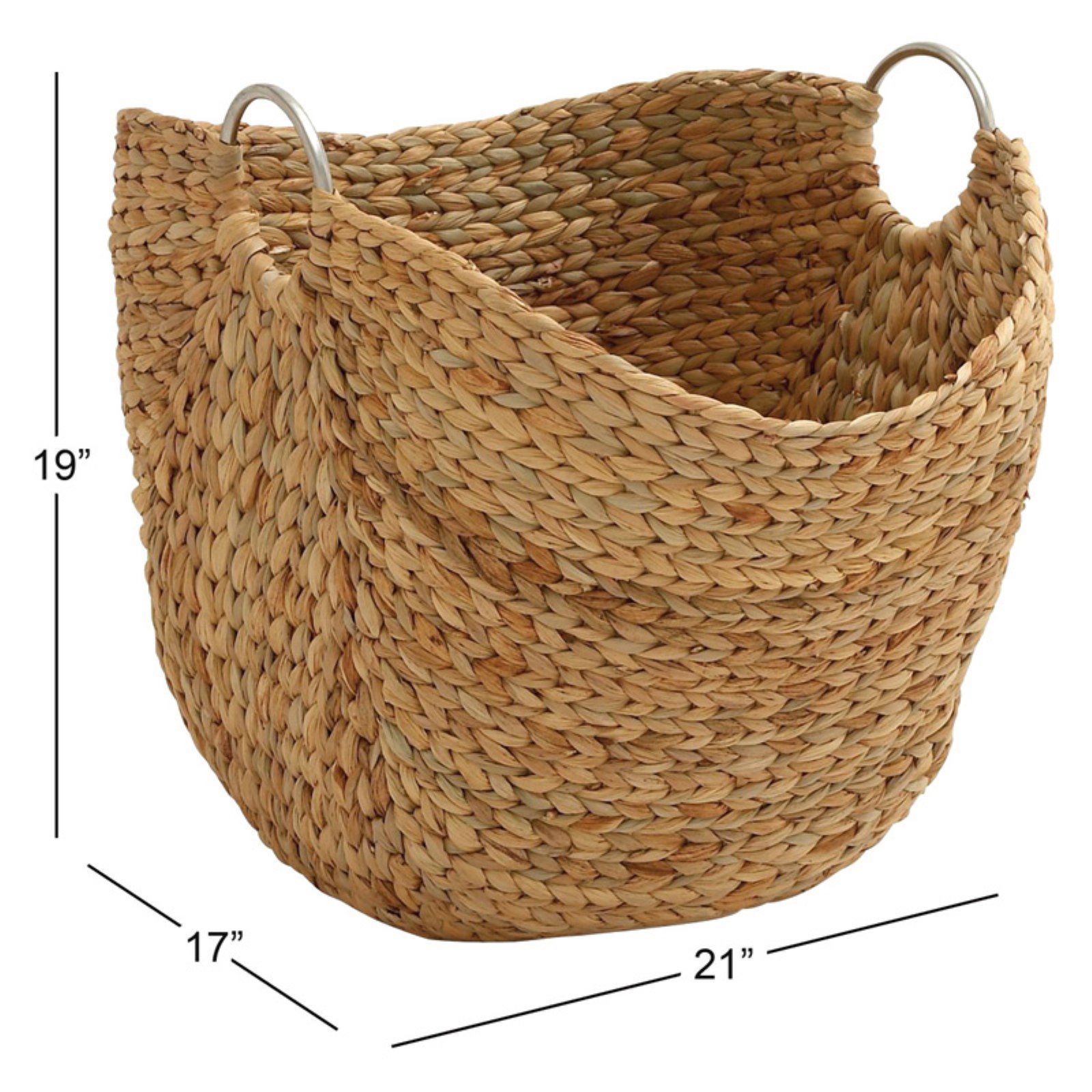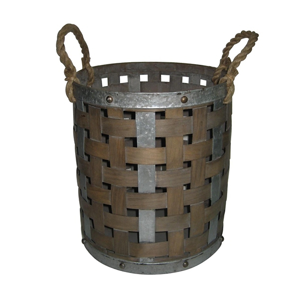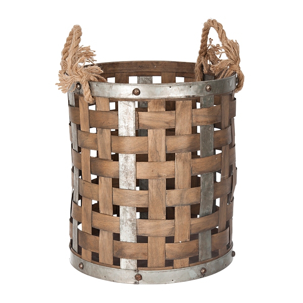 Round Wood And Metal Woven Basket With Handles Kirklands