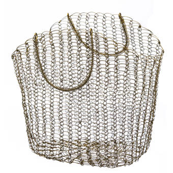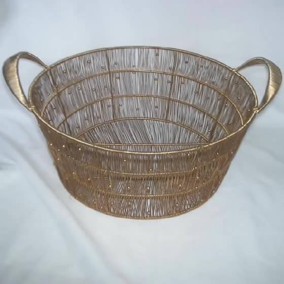 Hand Woven Round Metal Wire Basket With Short Handles And In Gold