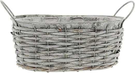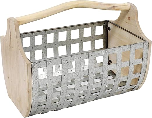 Amazon Com Tin Wood Woven Basket Gray Grey Metal Home Kitchen