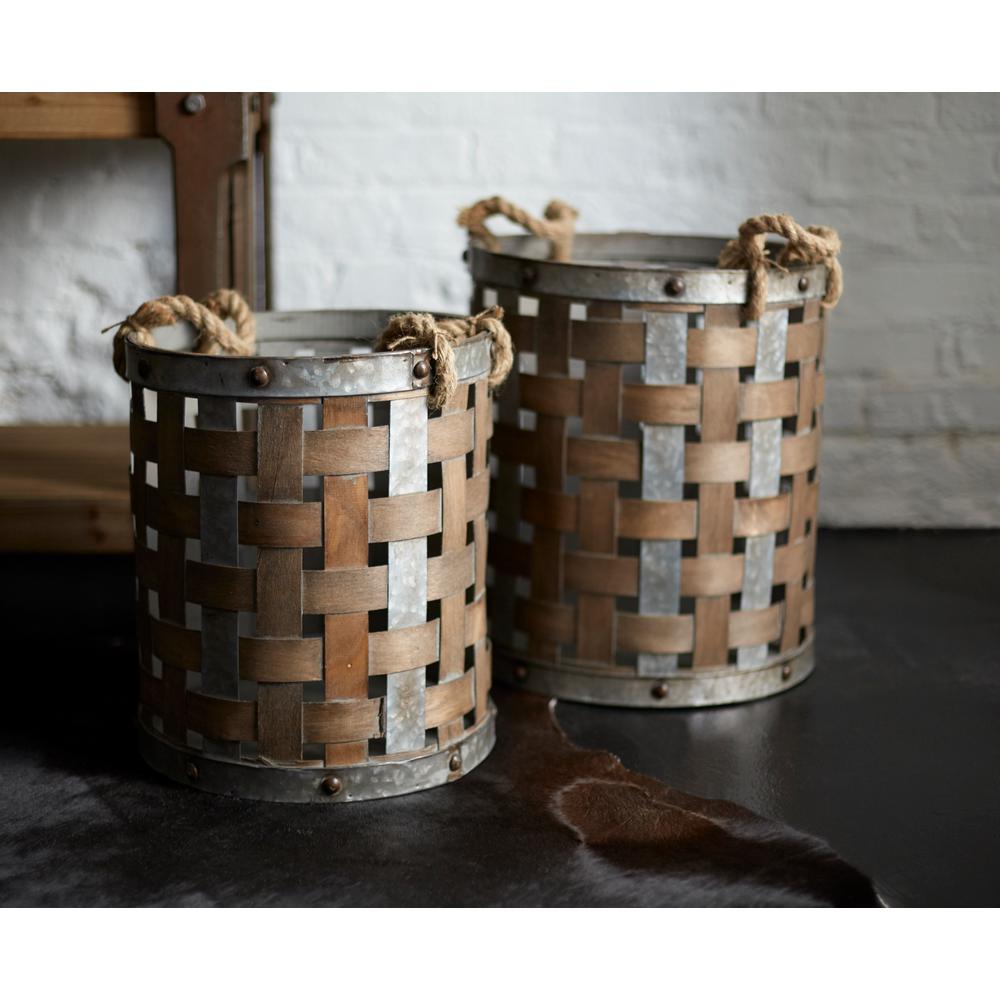 Tin Woven Basket With Wood Handles Set Of 2 Living Spaces